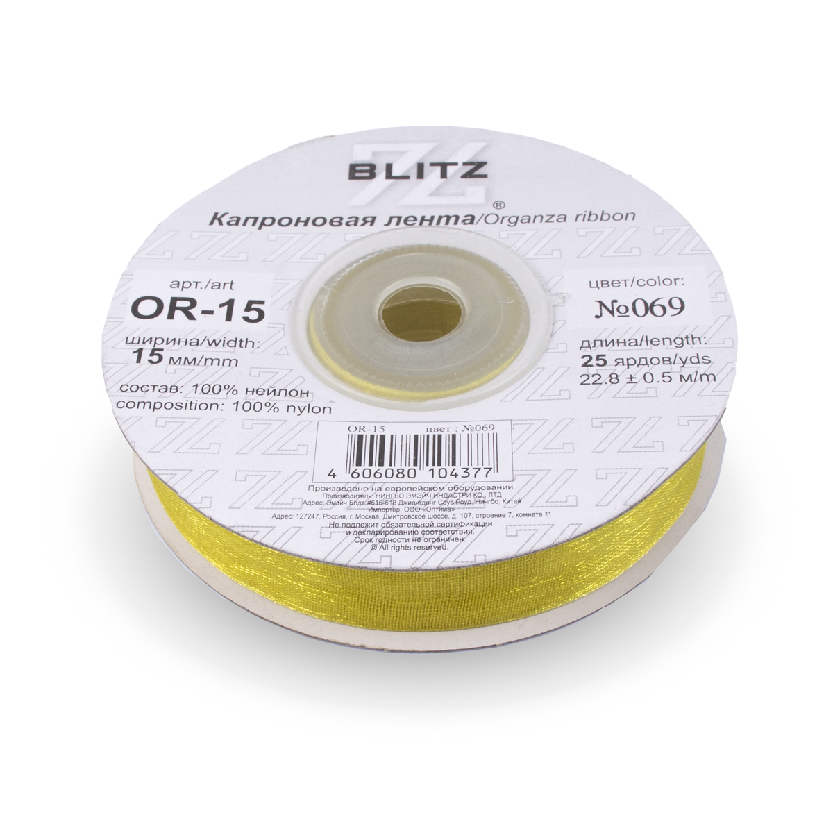 лента 15 мм OR-15 BLITZ 22.8 м ±0.5 м №069 оливковый